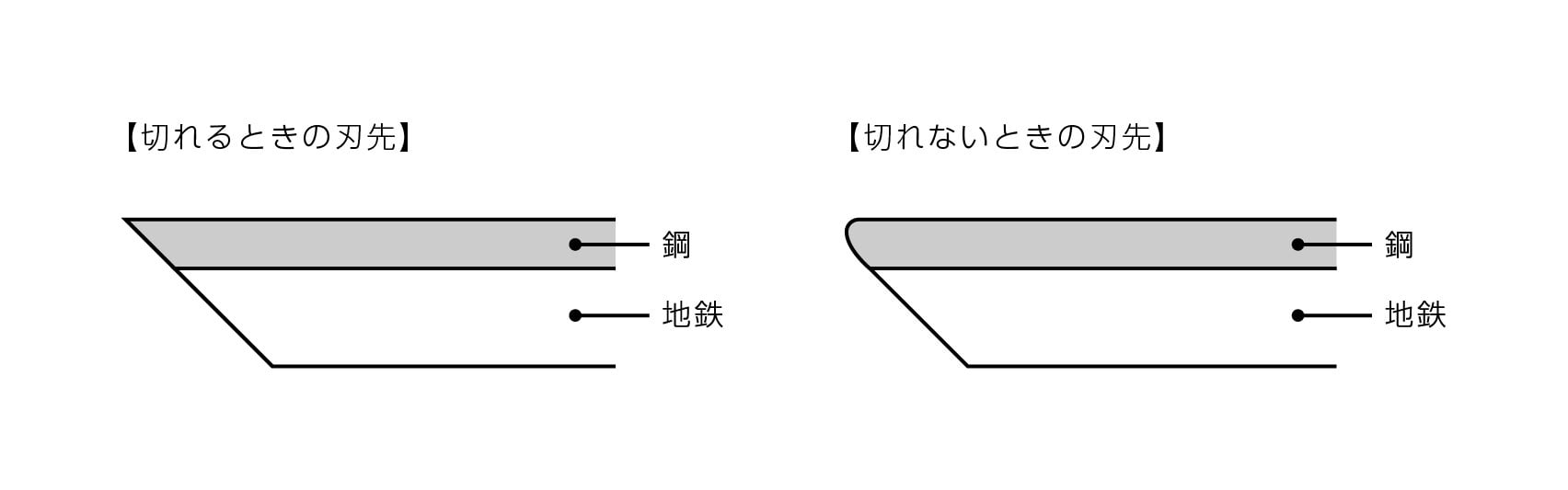 刃物が切れなくなる主な原因は、刃先が丸くなることです。
